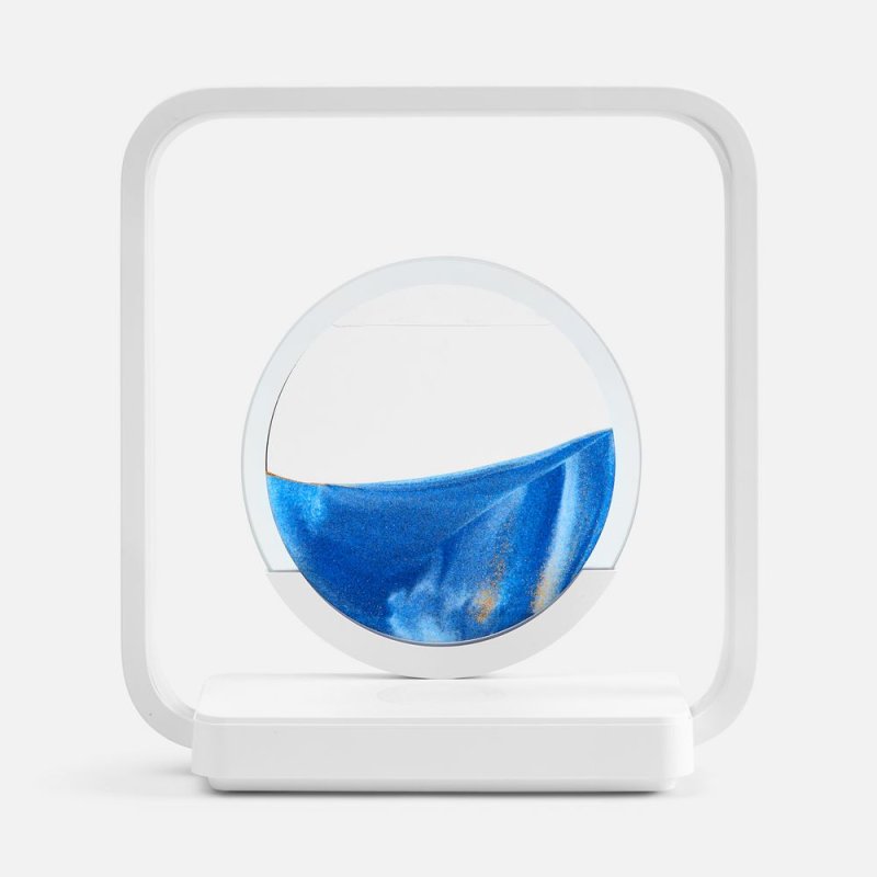 Круглую стеклянную вставку с песком можно перевернуть и наблюдать за плавным перемещением песчинок в жидкости. Это станет и отдыхом для глаз, и антистрессом, который успокоит во время напряженного рабочего дня. Регулируемая подсветка внутри рамки еще больше акцентирует внимание на картине и еще превращает Sandflow в стильный точечный источник света.