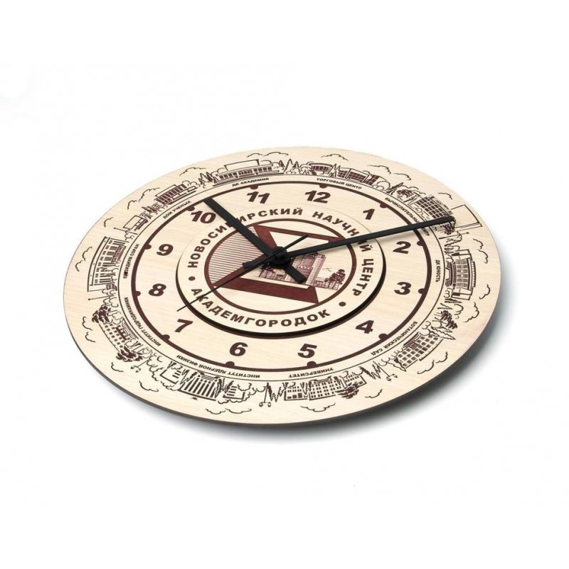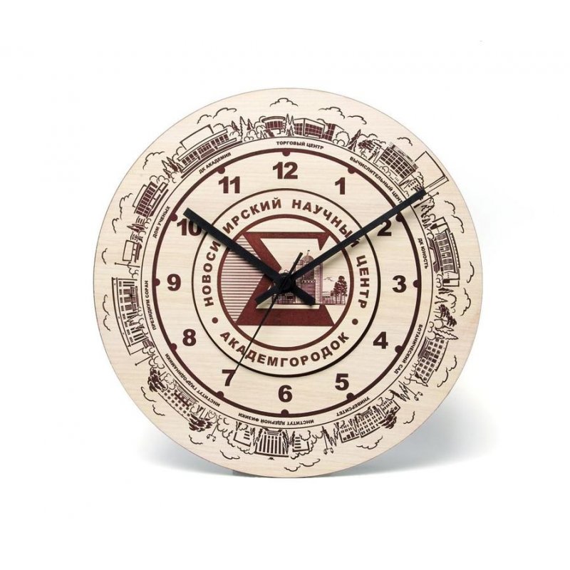 Эти часы навевают воспоминания о Новосибирском Академгородке и его достопримечательностях, расположенных по кругу циферблата - Институт Ядерной Физики, Президиум СО РАН, Дом Ученых и другие достопамятные места.