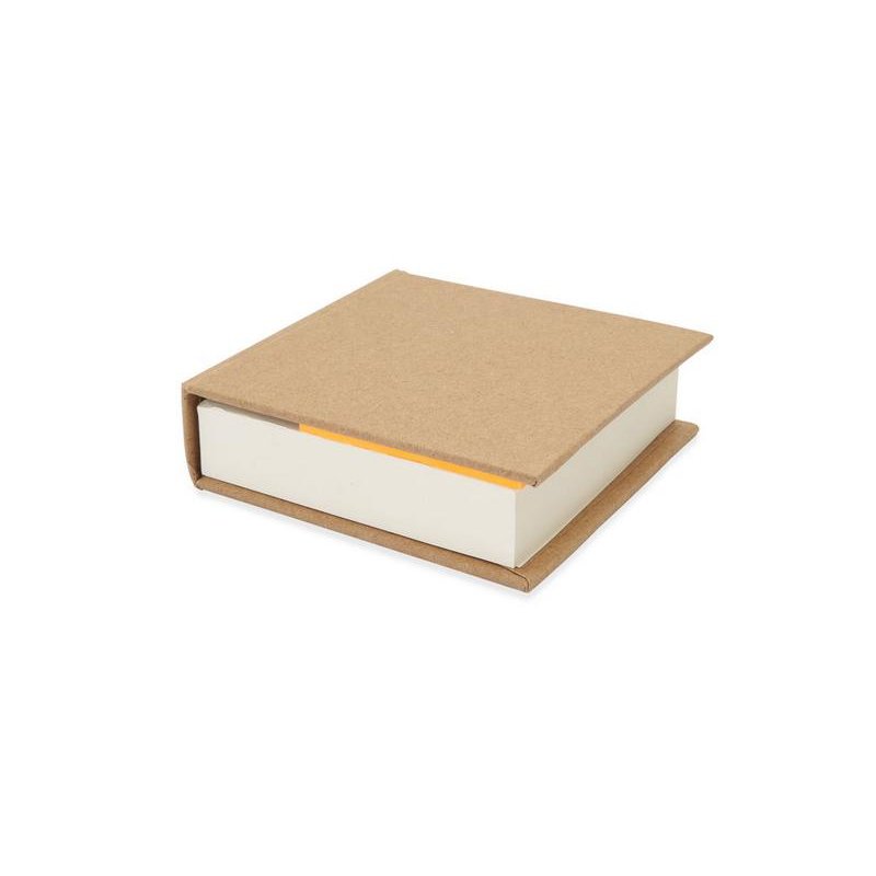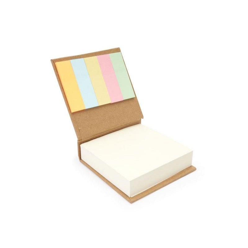 Блок для записей в обложке из переработанного картона. Включает 200 белых листов и 125 стикеров разных цветов.