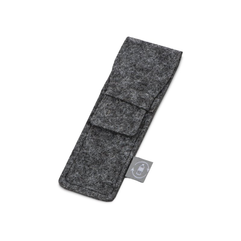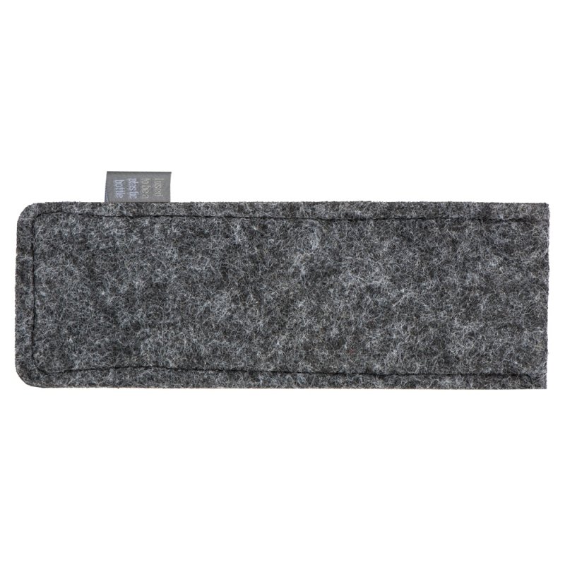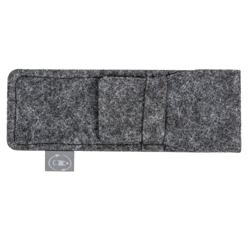 Футляр изготовлен из RPET-фетра. Этот материал хорошо держит форму и легко чистится, а ещё его использование позволяет заботиться об окружающей среде, поскольку он производится из переработанного пластика.