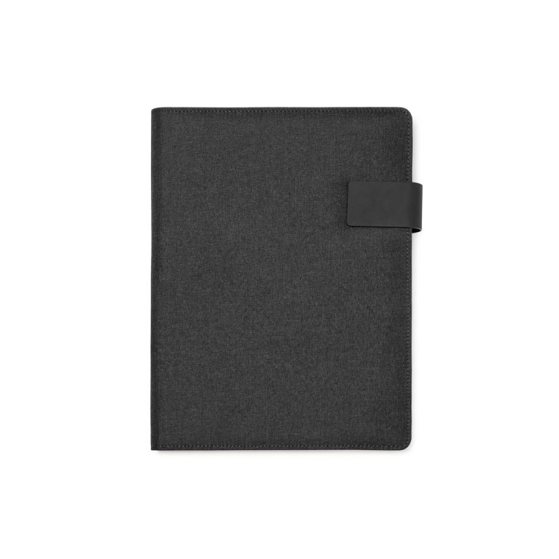 Многофункциональная папка формата А4 из 600D RPET с магнитной застежкой. В комплект входит съемный блокнот на 30 листов. 4 внутренних кармана и держатель для ручек.