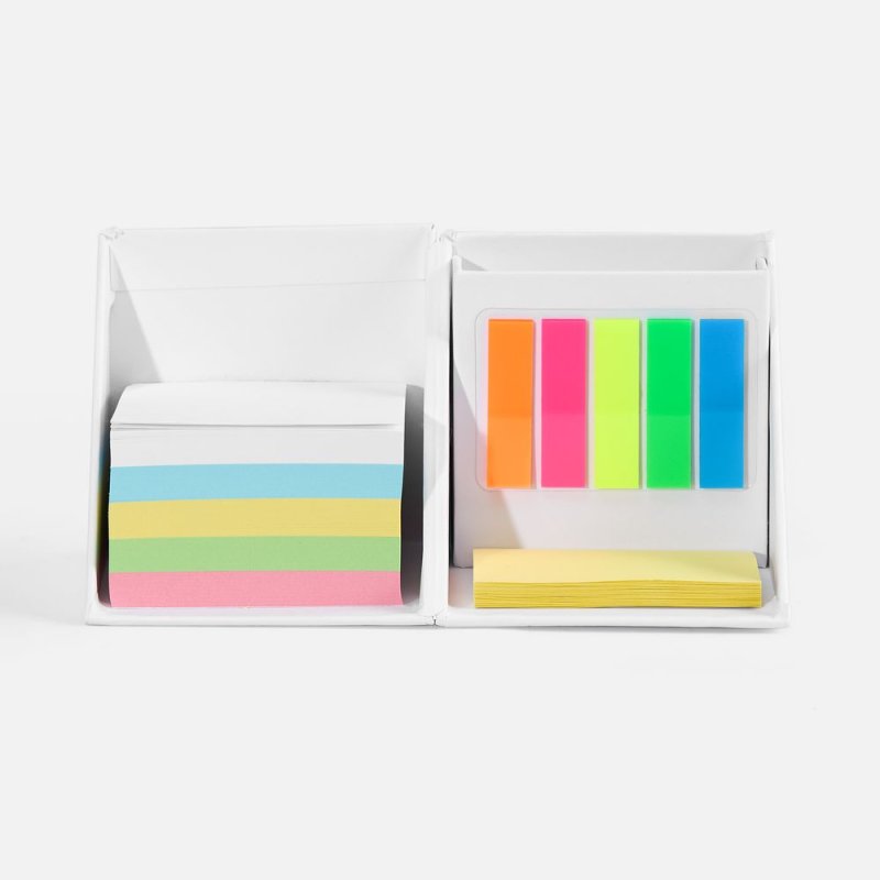 - Размеры:9х9х9 см; блок бумаги 7,5х7,5 см; блок листов с клейкой лентой 7,5х5 см; пластиковые закладки 4,5х1,2 см