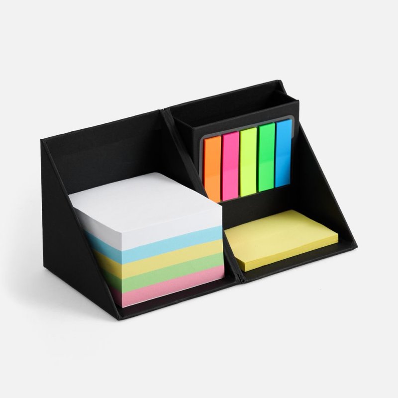 - Размеры:9х9х9 см; блок бумаги 7,5х7,5 см; блок листов с клейкой лентой 7,5х5 см; пластиковые закладки 4,5х1,2 см