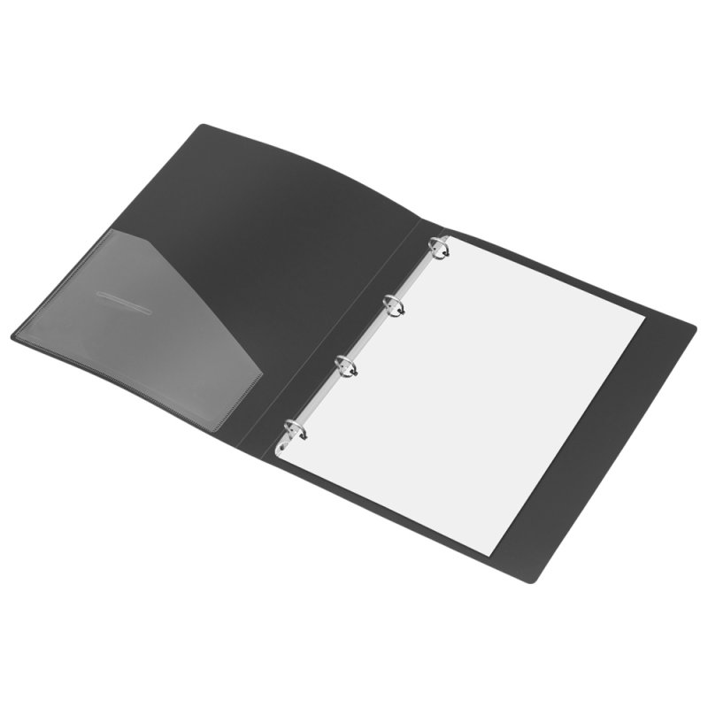 Папка на 4 кольцах — практичное решение для хранениядокументов. Она очень удобна в использовании: 4 кольца надежно фиксируют листы или файлы, при этом позволяя их легко менять. Прозрачный кармашек внутри идеально подходит для того, чтобы держать под рукой важные для офисной жизни мелочи: будь то визитки, флешки, стикеры или другие небольшие предметы, которые часто теряются в общих отделениях.