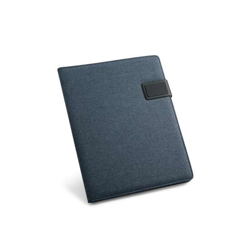 Папка A4 из искусственного льна и кожзаменителя. Имеет застежку на магните с пластинкой для персонализации. Внутри имеет блокнот из 20 листов в линейку, держатель для шариковой ручки (ручка не входит в комплект), карман для смартфона и держатели для кабелей или других принадлежностей (в комплект не входят). 233 x 310 x 18 мм | Пластина: 50 x 30 мм. Вид нанесения, рекомендуемый поставщиком: трансфер, гравировка.