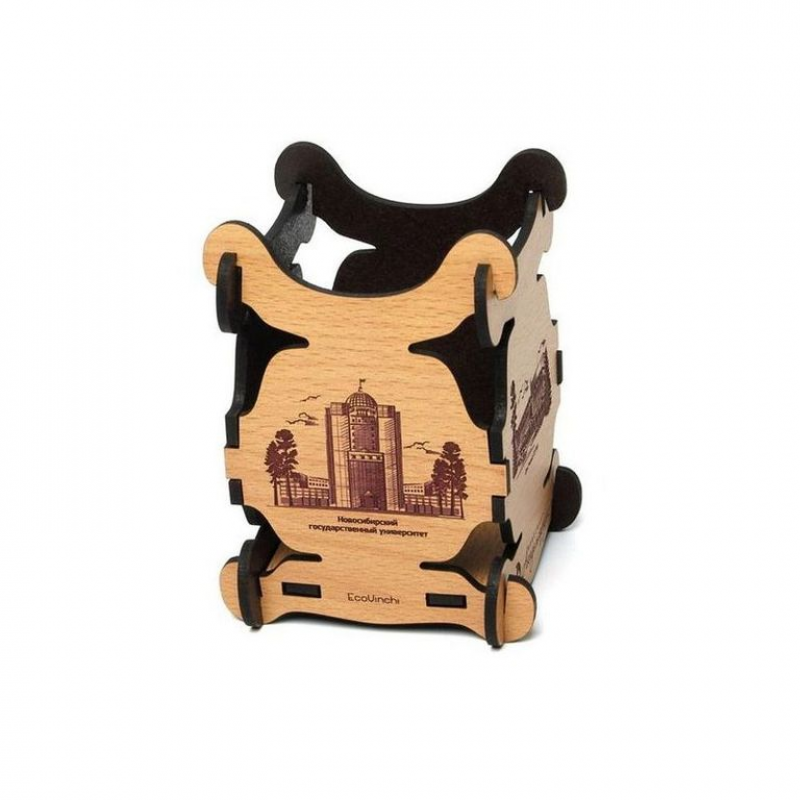 Карандашница - такой простой, и такой полезный предмет имеет важную особенность. Когда её обладатель садится за стол, она всегда у него перед глазами. А четыре ее стороны красиво напоминают о прекрасном времени, проведённом в новосибирском Академгородке.