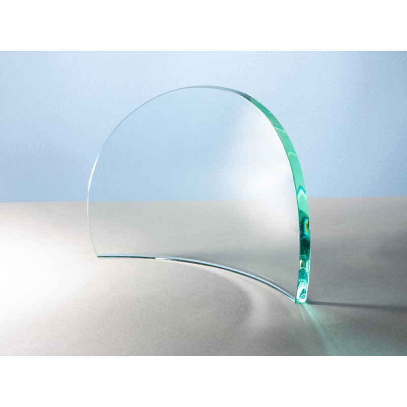 Награда выполнена из прозрачного стекла, не имеет постамента и никаких отвлекающих деталей. Минималистична и лаконична.