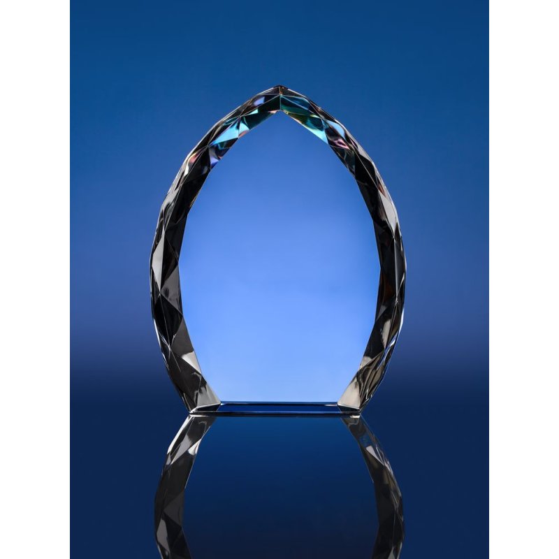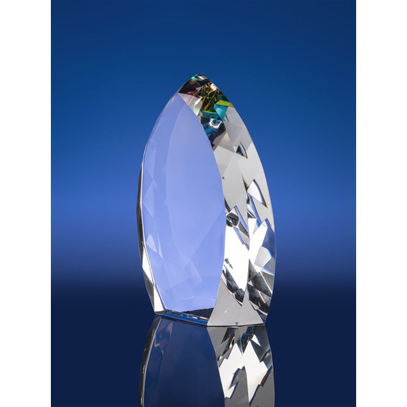 Стела изготовлена из хрусталя К9, в основе которого лежит оптическое боросиликатное стекло. Эту марку хрусталя отличает низкий процент посторонних включений, высокий показатель преломления и высокая прозрачность.