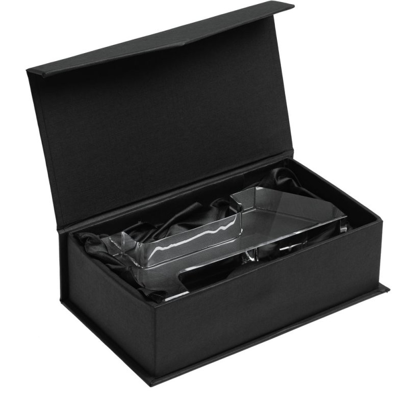Стела изготовлена из хрусталя К9, в основе которого лежит оптическое боросиликатное стекло. Эту марку хрусталя отличает низкий процент посторонних включений, высокий показатель преломления и высокая прозрачность — идеальные качества для изготовления наград премиального уровня.