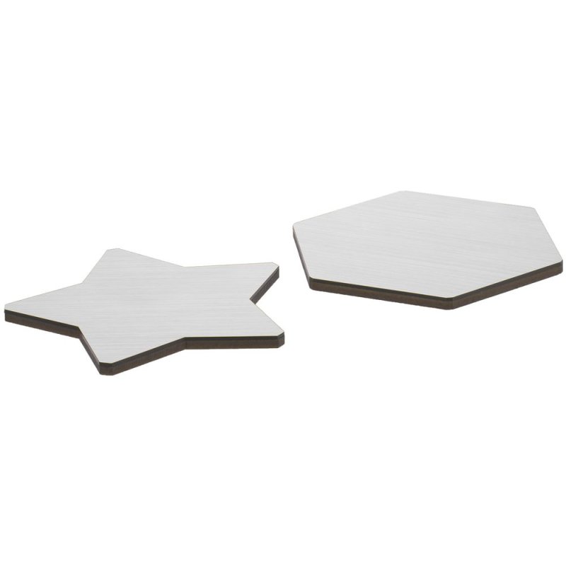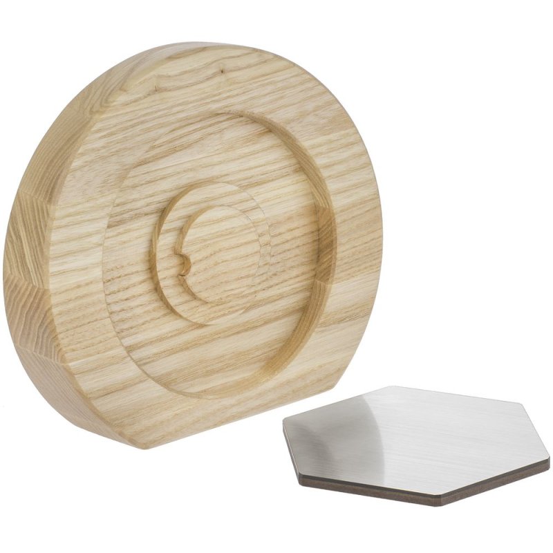 Вставка со звездой из зеркального пластика на деревянной основе крепится на приподнятое основание внутри стелы, что создает объем и многослойность награды. На вставке предусмотрен клеевой слой для крепления после нанесения.