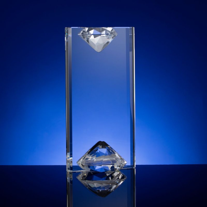 Стела Incrystal — воплощение минимализма, приправленного двумя привлекательными акцентами. Крупные детали в форме эффектных алмазов у основания и в навершии образуют гармоничное единство, олицетворяя сильные стороны, устремленность к единой цели и особую ценность получателя награды. Свет красиво преломляется в гранях этих алмазов, создавая приятный визуальный эффект и добавляя стеле оттенок роскоши.
