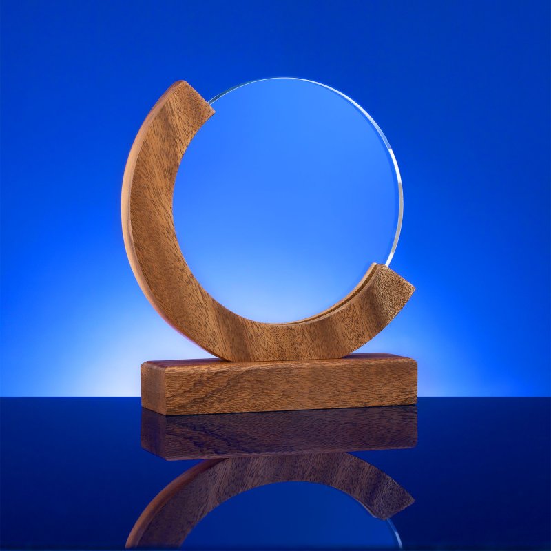Стела изготовлена из стекла К9, в основе которого лежит оптическое боросиликатное стекло. Эту марку стекла отличает низкий процент посторонних включений, высокий показатель преломления и высокая прозрачность — идеальные качества для изготовления наград премиального уровня.