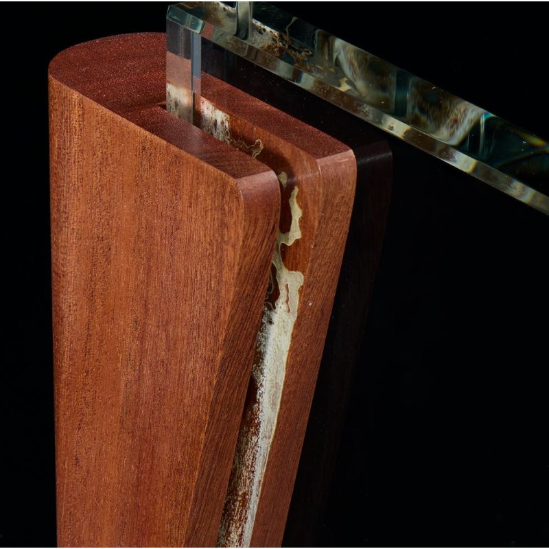 Прозрачная вставка изготовлена из стекла К9, в основе которого лежит оптическое боросиликатное стекло. Эту марку стекла отличает низкий процент посторонних включений, высокий показатель преломления и высокая прозрачность — идеальные качества для изготовления наград премиального уровня.