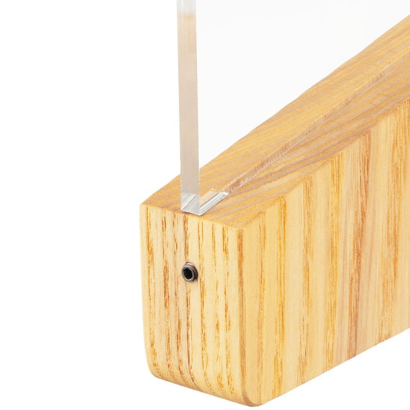 Акриловая часть вынимается для нанесения логотипа, после нанесения крепится к деревянному основанию на винты (входят в комплект).