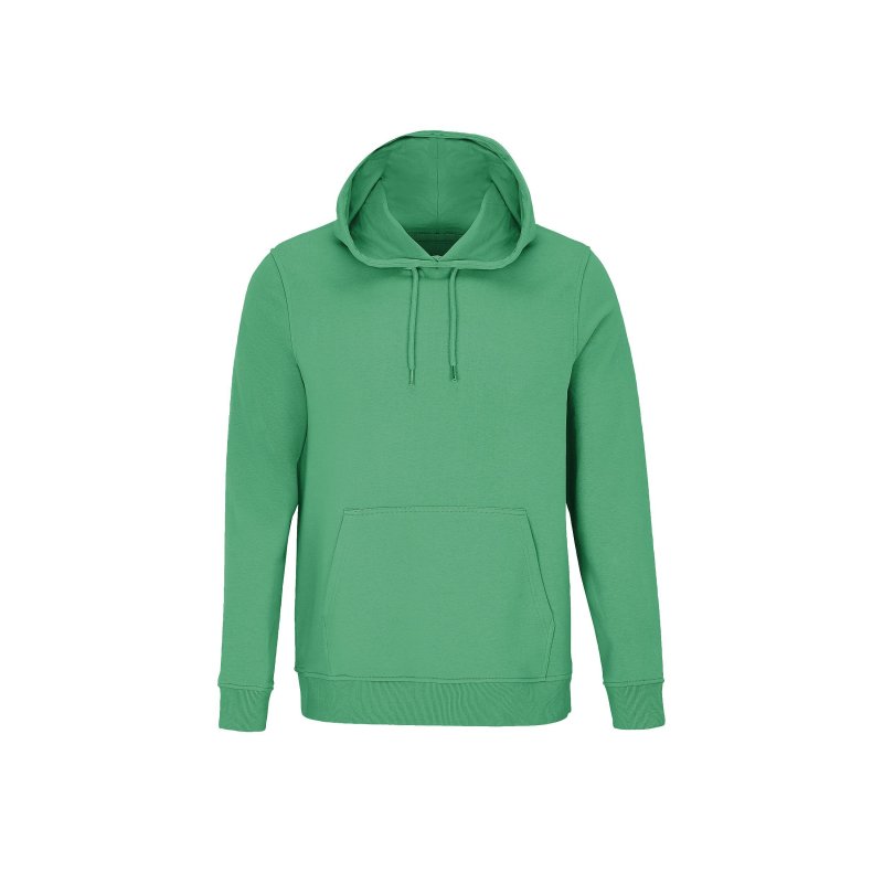 Шитый трикотаж, Втачные рукава, Манжеты и нижняя часть на трикотажной резинке 2x2, Карман-кенгуру, Полумесяц и окантовка из джерси на горловине, Капюшон на подкладке из джерси, Завязки с металлическими наконечниками и люверсами