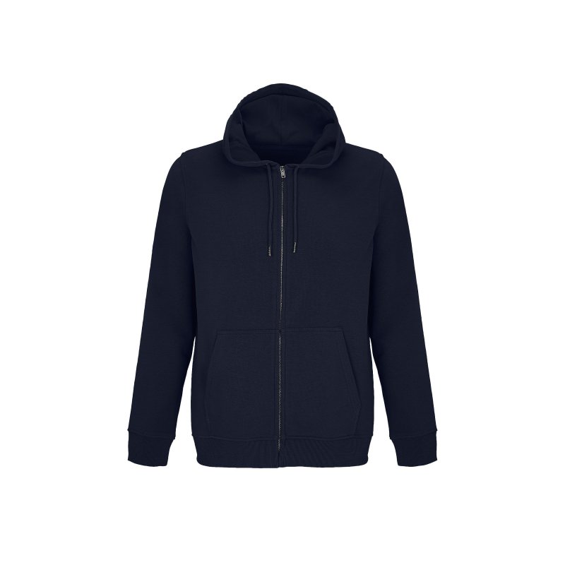 Шитый трикотаж, Втачные рукава, Манжеты и нижняя часть на трикотажной резинке 2x2, Карман-кенгуру, Капюшон на подкладке из джерси, Завязки с металлическими наконечниками и люверсами, Основная застежка на молнии под планкой, Металлические молния и бегунок, Полумесяц и окантовка из джерси на горловине