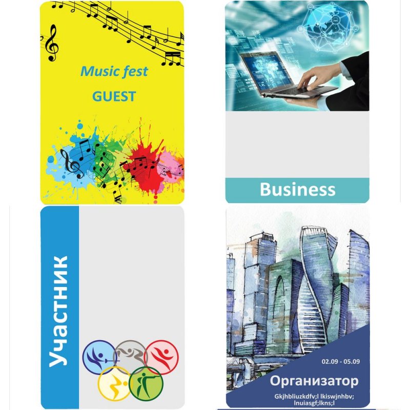 Яркое и четкое изображение печатается прямо на картоне с одной или двух сторон, а затем ламинируется — так бейдж становится более устойчивым к истиранию и воздействию влаги.