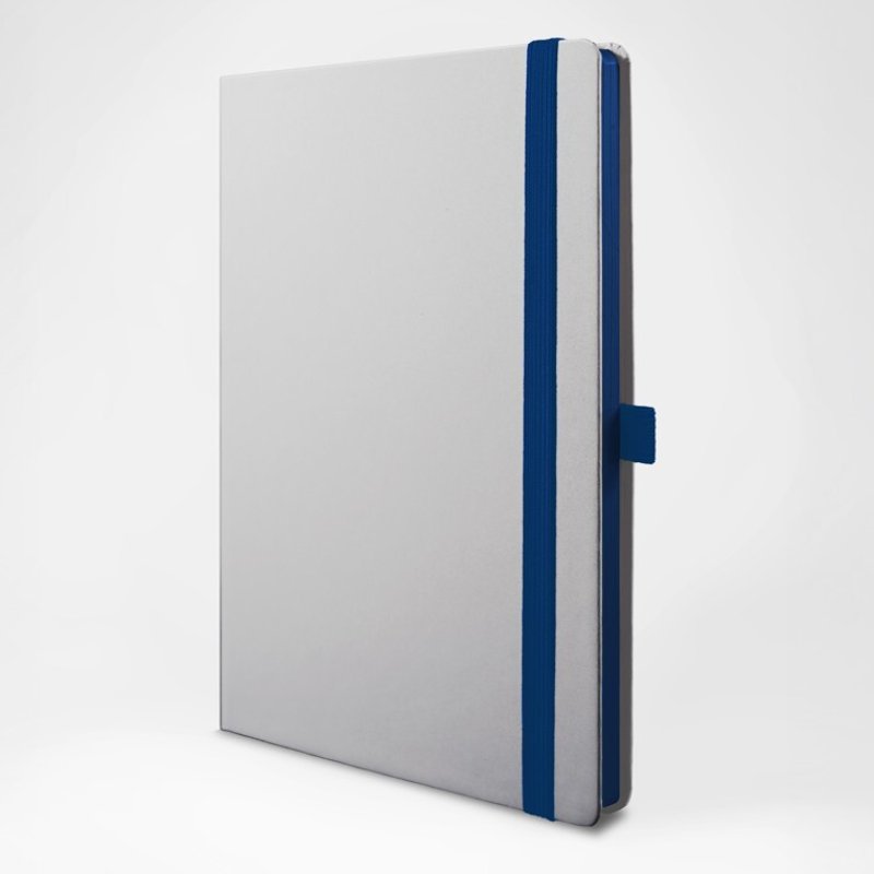 Записная книга формат 14,5х21 см в линейку 256 страниц, кремовая бумага 70 г сертифицирована FSC. Дополнительно имеются страницы в точку, в клетку, для систематизации проектов, а также листы без разметки с перфорацией. Печать в 1+1 цвет, все страницы пронумерованы. Шитый блок Форцазы из черной дизайнерской бумаги 140 гр FSC. Белая обложка из высококачественного кожзама от ведущего итальянского производителя. Ляссе в тон обложки. Резинка 10 мм в тон обложки.