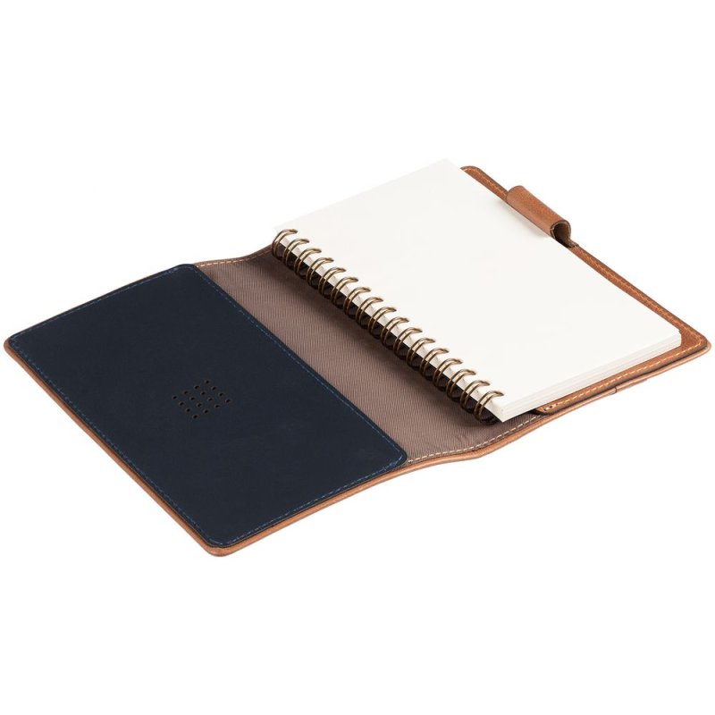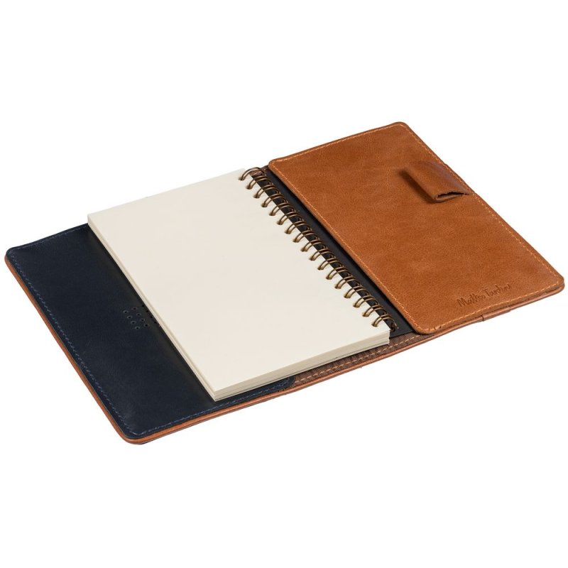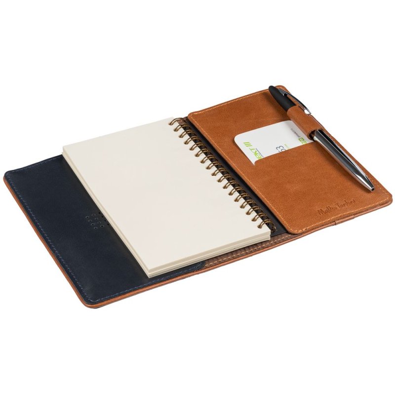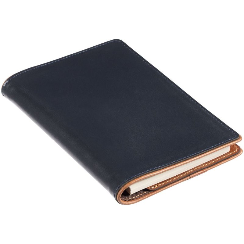 Обложка из натуральной кожи с отделением для визиток и петлей для ручки.