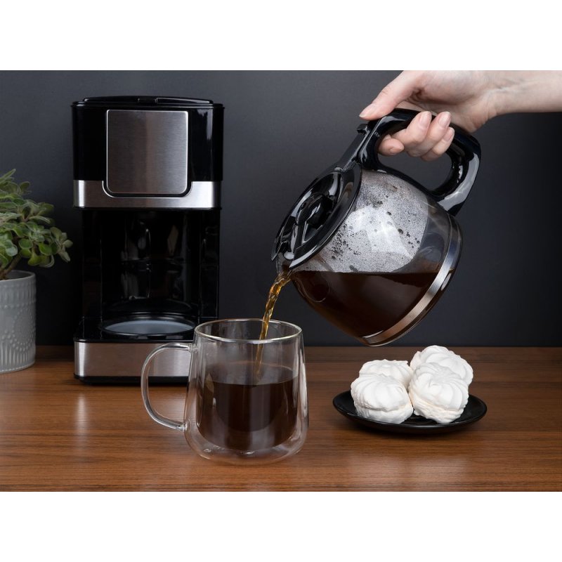 С кофеваркой DayDriver легко приготовить мягкий фильтрованный кофе популярным капельным методом. Она может долгое время сохранять напиток горячим, поддерживая его температуру. Противокапельная система препятствует попаданию жидкости на нагревательный элемент: можно переливать кофе в чашку, не дожидаясь окончания полного цикла приготовления.