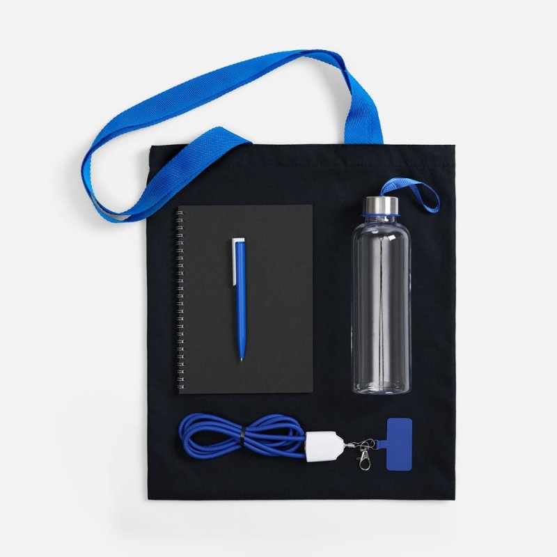 - Материал:сумка - хлопок, 240 г/м²; ручки - полиэстер; кабель-ланьярд - нейлон, пластик; металл; бутылка - пластик, пищевой; крышка - металл, пластик; блокнот - бумага, картон; ручка - пластик