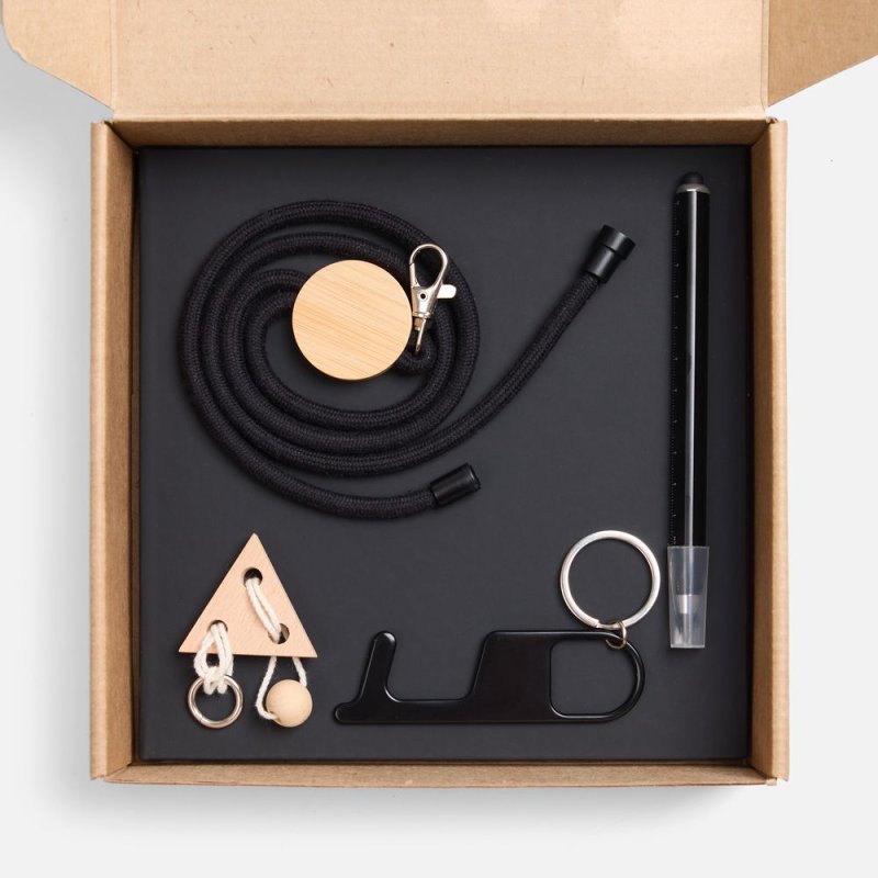 - Материал:скетчбук - искусственная кожа; покрытие софт-тач; шнурок - дерево, хлопок; металл; головоломка - береза, шнур - хлопок; карандаш - металл, алюминий; брелок - металл; коробка - микрогофрокартон