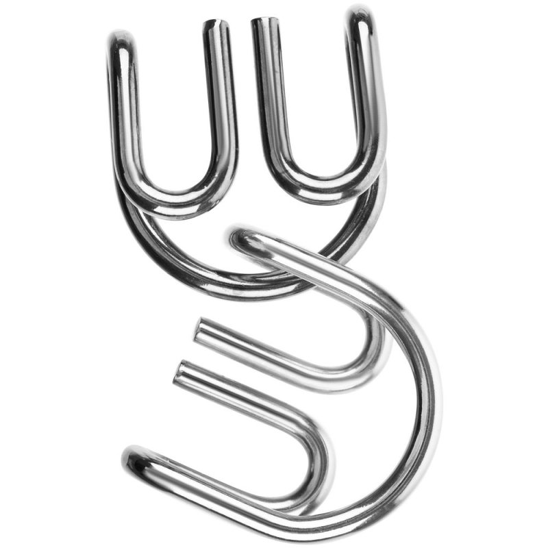 Гладкие металлические детали приятно крутить в руках, а поиск вариантов их разъединения особенно понравится тем, кто любит необычные задачи на смекалку и внимательность.