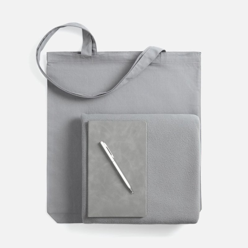 Набор с основной канцелярией и пледом — классика жанра в уютном исполнении. С компактным блокнотом под рукой будет удобно делать заметки в любое время, а легкий флисовый плед позволит выразить самые теплые пожелания.