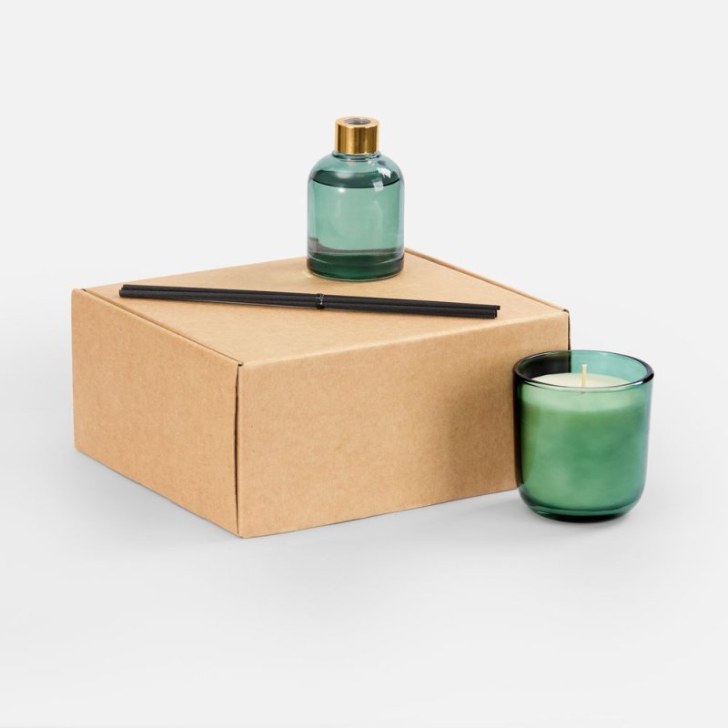 - Материал:флакон, подсвечник - стекло, палочки из файбера; свеча - воск; коробка - микрогофрокартон, плотность 385 г/м²