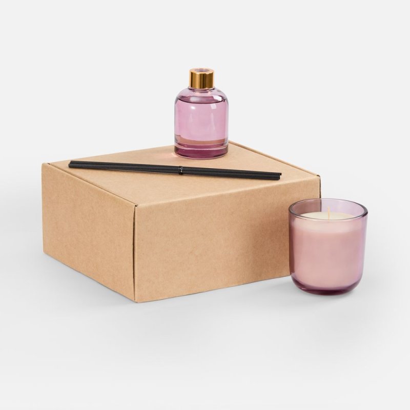 - Материал:флакон, подсвечник - стекло, палочки из файбера; свеча - воск; коробка - микрогофрокартон, плотность 385 г/м²