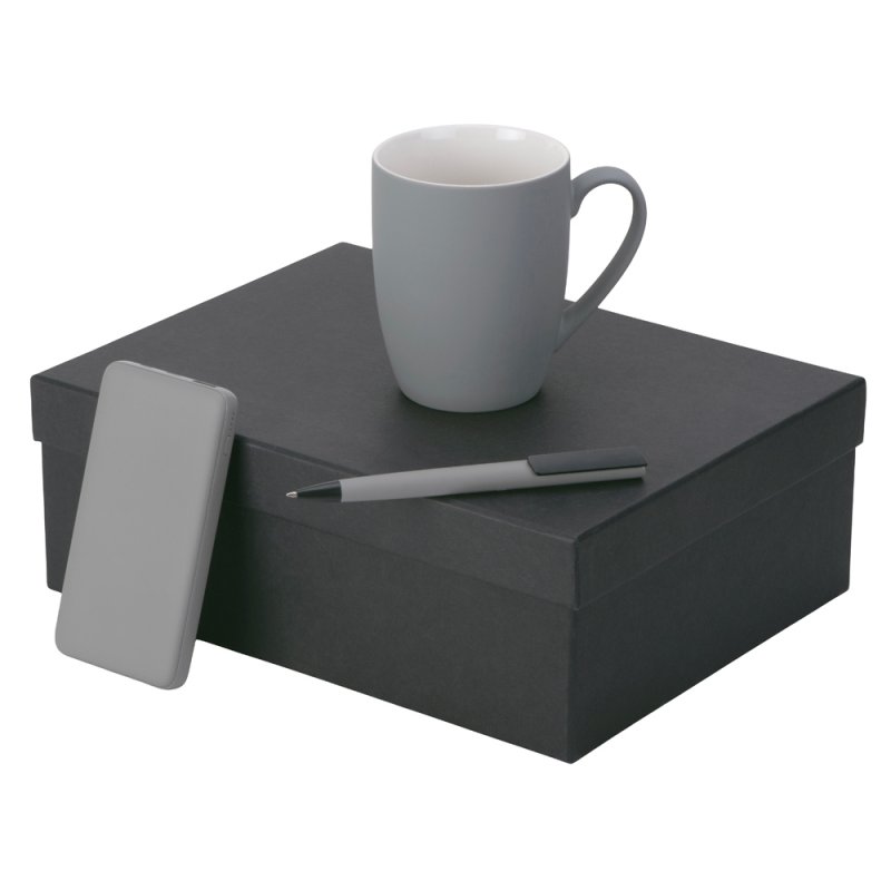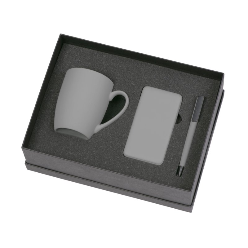 - Материал товара:кружка - фарфор с покрытием soft-touch, повербанк - пластик с покрытием soft-touch, ручка - пластик с покрытием soft-touch.