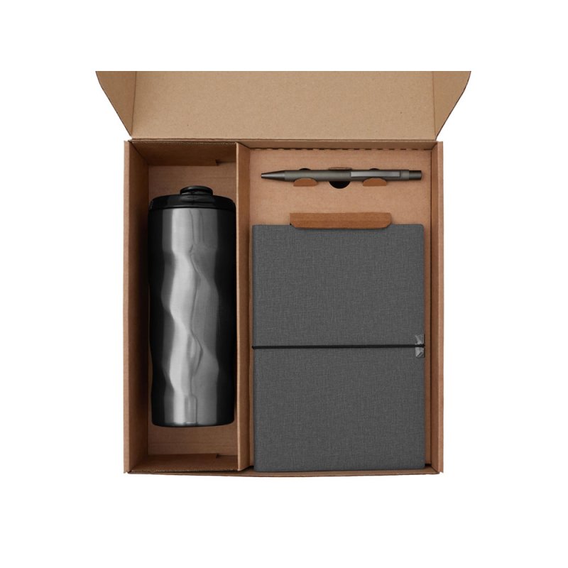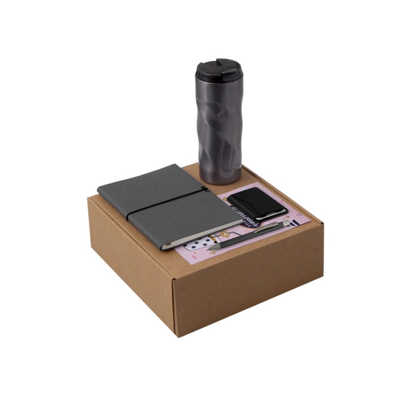 - Материал товара:блокнот- искусственная кожа, бумага, ручка - металл с поверхностью soft-touch, термокружка - кружка- нержавеющая сталь, крышка- пластик, картхолдер - переработанный полиуретан, открытка - бумага, коробка- картон