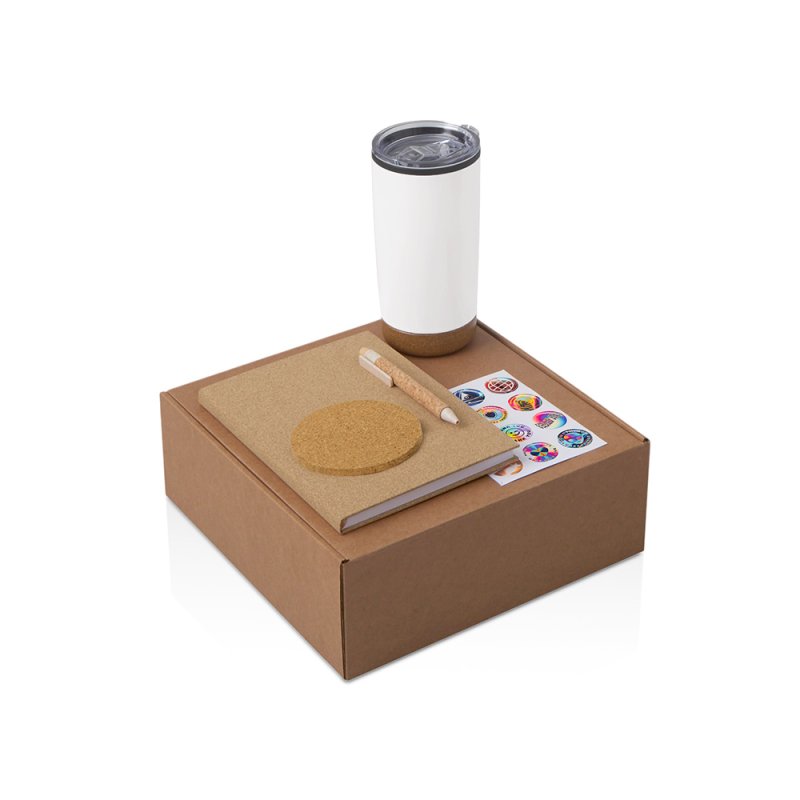 - Материал товара:блокнот - пробка, картон, переработанная бумага, ручка - пробка, пластик, дерево, стикеры - смола, коробка - картон