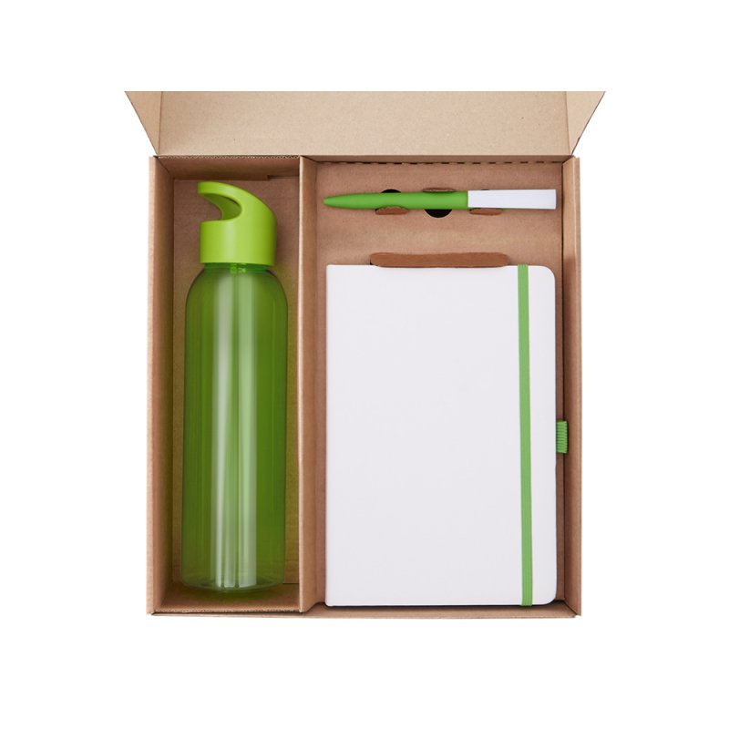 - Материал товара:бутылка -поликарбонат, блокнот - искусственная кожа, бумага, ручка - пластик с покрытием soft-touch, держатель - пластик, ланчбокс - пластик, открытка - картон, коробка - картон