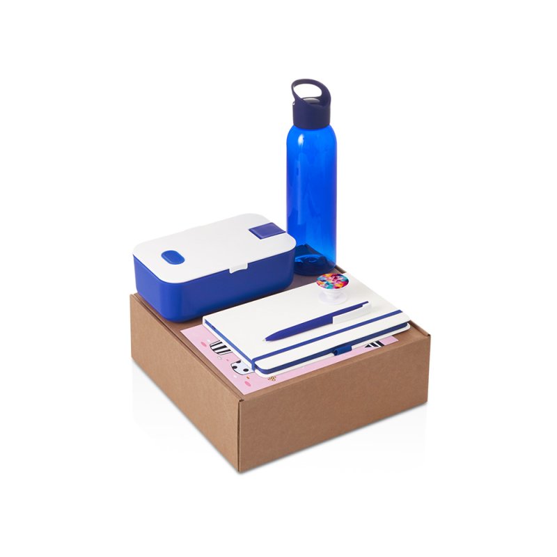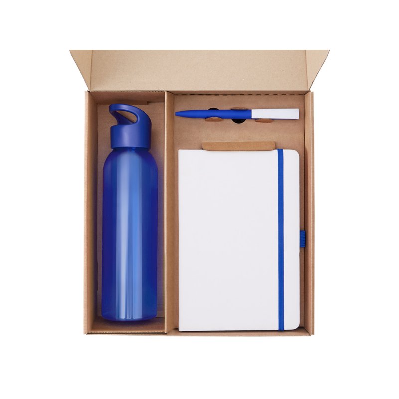 - Материал товара:бутылка -поликарбонат, блокнот - искусственная кожа, бумага, ручка - пластик с покрытием soft-touch, держатель - пластик, ланчбокс - пластик, открытка - картон, коробка - картон
