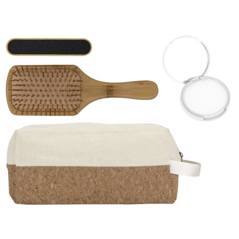 - Материал товара:расческа, пилка для ногтей - бамбук, бальзам для губ -пластик, несессер - хлопок, пробка, ручка - полиэстер