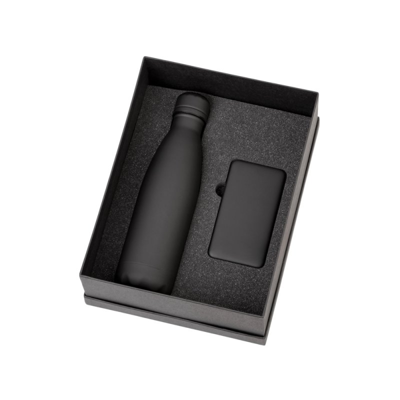 - Материал товара:повербанк- пластик с покрытием soft-touch, термобутылка- нержавеющая cталь с покрытием soft-touch