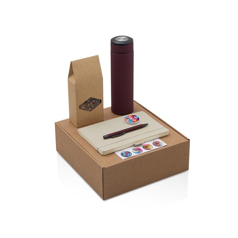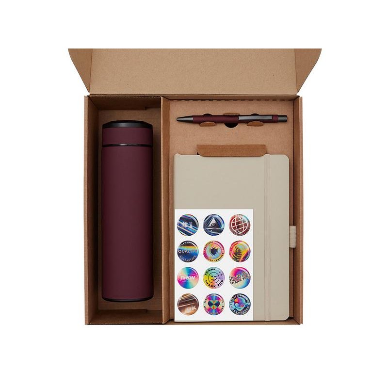 - Материал товара:термос - нержавеющая cталь с покрытием soft-touch, блокнот - искусственная кожа soft-touch, ручка - металл с поверхностью soft-touch, чай - крафт-пакет, стикеры - смола, держатель для телефона - пластик, коробка - картон