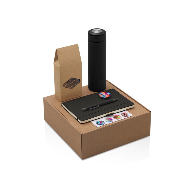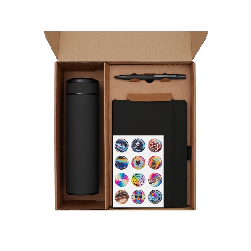 - Материал товара:термос - нержавеющая cталь с покрытием soft-touch, блокнот - искусственная кожа soft-touch, ручка - металл с поверхностью soft-touch, чай - крафт-пакет, стикеры - смола, держатель для телефона - пластик, коробка - картон