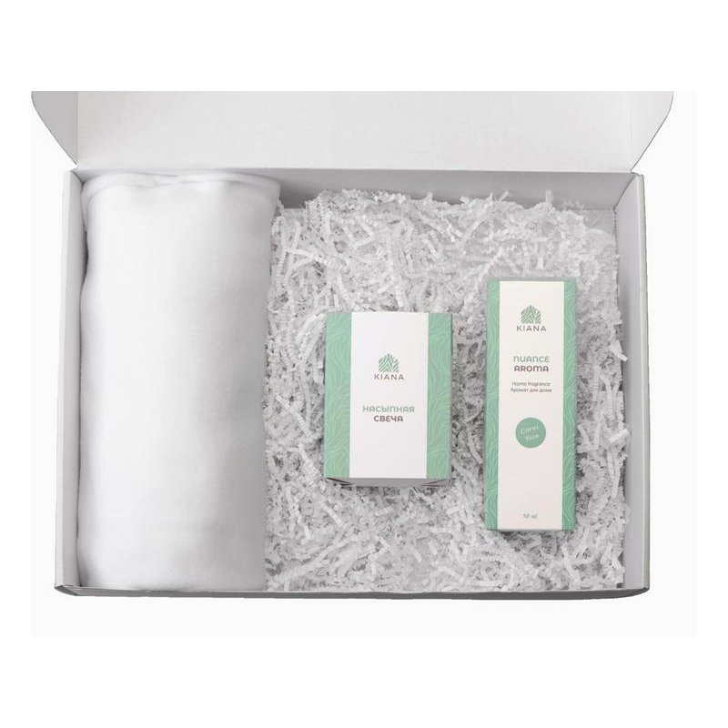 Набор состоит из флисового пледа, диффузора Kiana и насыпной свечи, которые вместе создадут настоящую магию, превратив обычный вечер в время релакса, отдыха и заботы о себе.