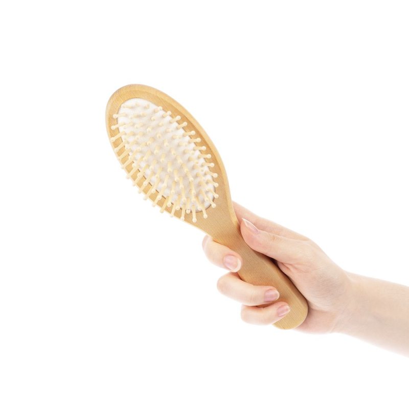 Массажная расческа Vihri из карельской березы с закругленными деревянными зубцами обеспечивает бережное расчесывание волос любой длины. Натуральный материал не дает жирным волосам засаливаться, а сухим — сечься и ломаться, нейтрализует статическое электричество, приглаживает чешуйки и усиливает естественный блеск.
