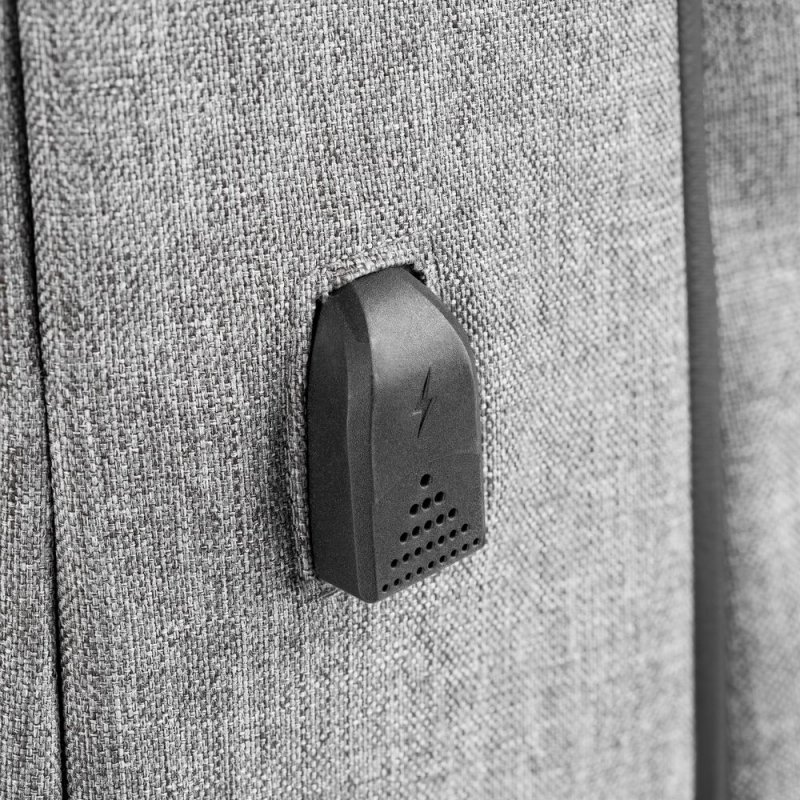 Для удобства пользователя с левой стороны рюкзака размещен внешний USB-порт для зарядки гаджетов: аккумулятор можно положить во внутренний кармашек. С InGreed путешествовать становится проще, ведь он удобно крепится на ручку чемодана.
