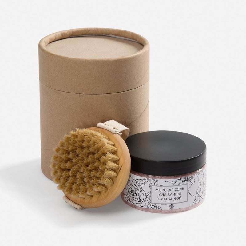 - Размеры:тубус: диаметр 12,2 см, высота 15 см; соль: диаметр 9 см, высота 5,7 см; щетка: диаметр 8 см