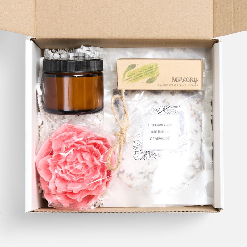- Материал:коробка - микрогофрокартон, подсвечник - стекло; крышка - пластик; футляр помады - пластик; упаковка - картон