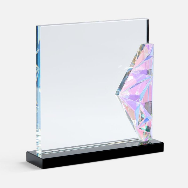 Evergleam — оригинальное исполнение традиционной стелы с эффектной цветной вставкой. Эта переливающаяся разными оттенками объемная деталь, словно какой-то фантастический кристалл, добавляет привычной награде магии и свежести, олицетворяя драгоценность признанного успеха и высокое мастерство самого получателя.