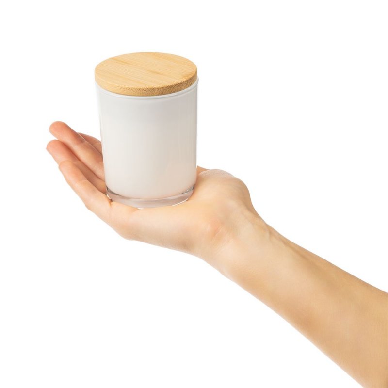 - Материал:свеча - воск, кокосовый, парафин; подсвечник - стекло; крышка - дерево; фитиль - дерево