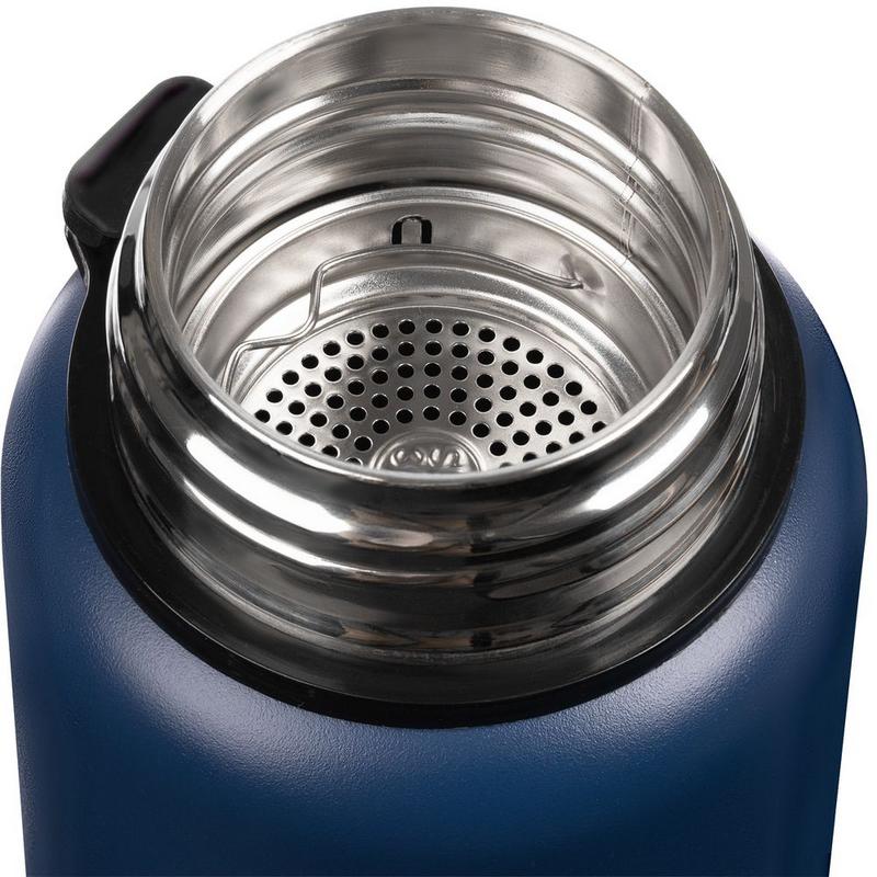 Термос в строгом металлическом корпусе с вакуумной изоляцией. Завинчивающаяся пробка, крышка-чашка и ситечко для фильтрации — в таком термосе удобно заварить чай или кофе. Напиток останется горячим, а чаинки не попадут в чашку.