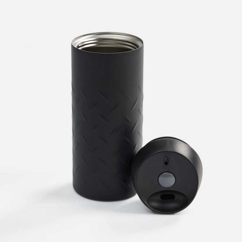 Двухслойная вакуумная конструкция из нержавеющей стали. Герметичная завинчивающаяся крышка с нажимным клапаном для питья. Стакан подходит для большинства автомобильных подстаканников.