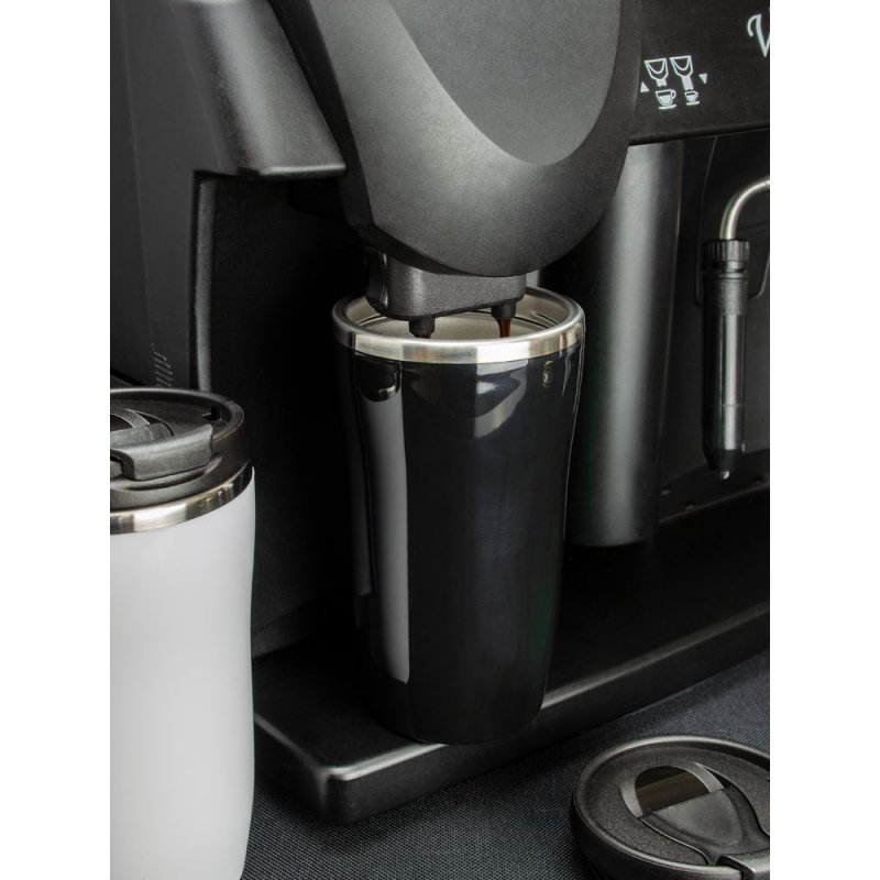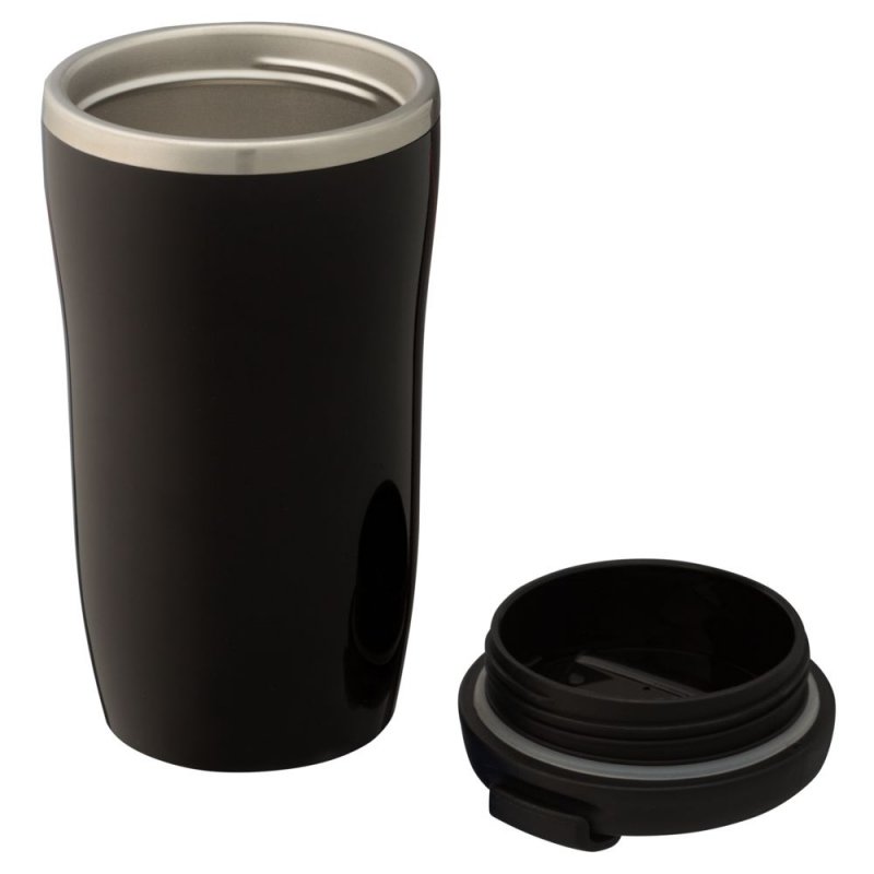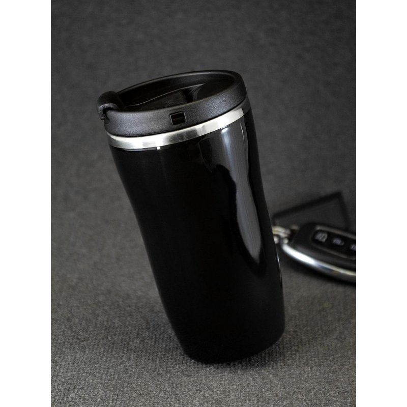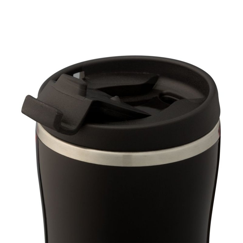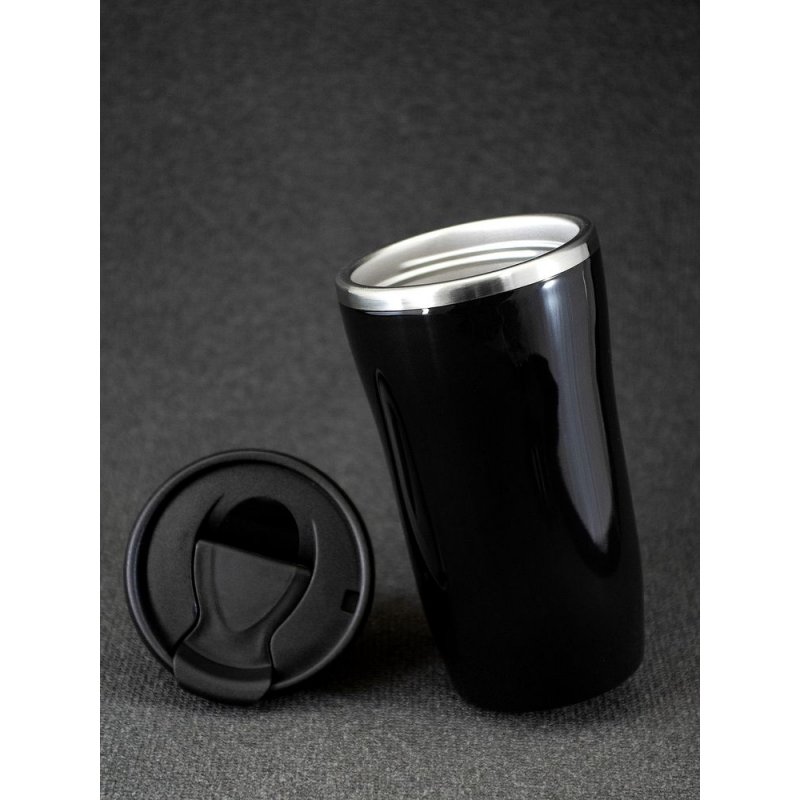 Двухслойная конструкция из пластика снаружи и пищевой нержавеющей стали внутри. Герметичная завинчивающаяся крышка с откидным клапаном для питья. В отверстие в крышке можно вставить шнурок для удобного ношения стакана на руке. Шнурок в комплект не входит.
