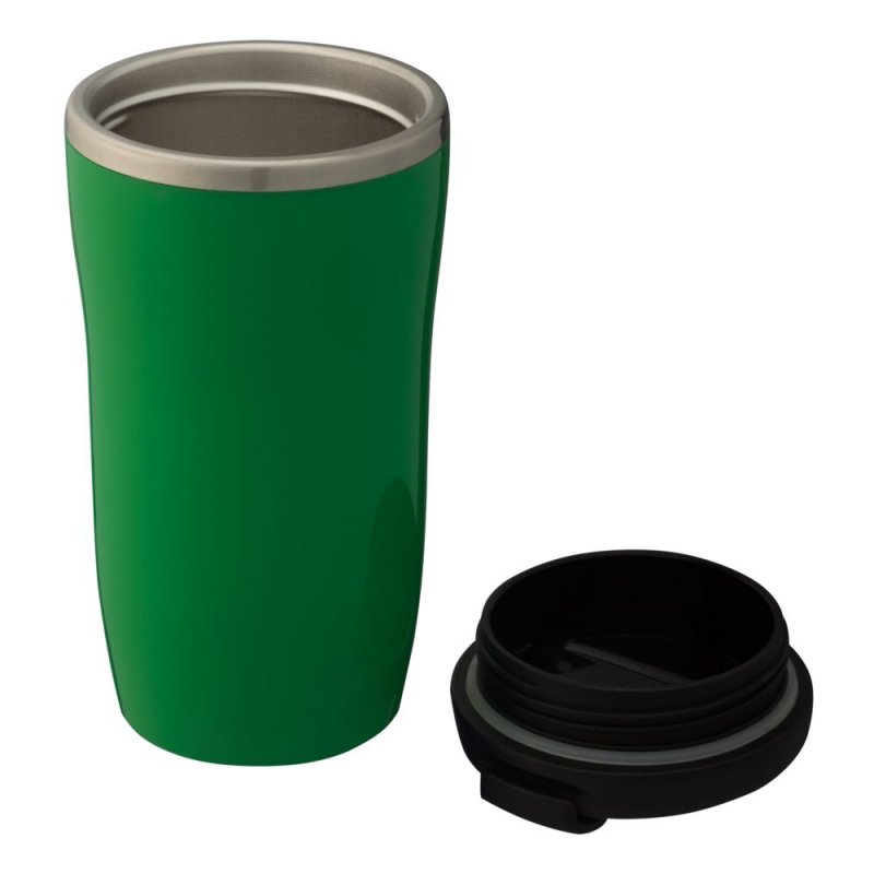 Двухслойная конструкция из пластика снаружи и пищевой нержавеющей стали внутри. Герметичная завинчивающаяся крышка с откидным клапаном для питья. В отверстие в крышке можно вставить шнурок для удобного ношения стакана на руке. Шнурок в комплект не входит.